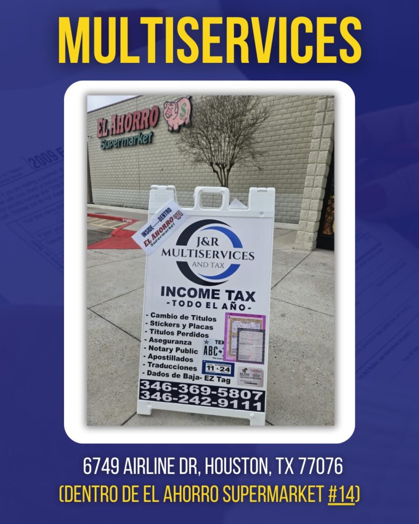 En J&R Multiservices and Tax te ayudamos con tus impuestos (Income Tax) y todos los trámites de tu vehículo: placas, stickers, títulos, títulos perdidos y EZ Tag.